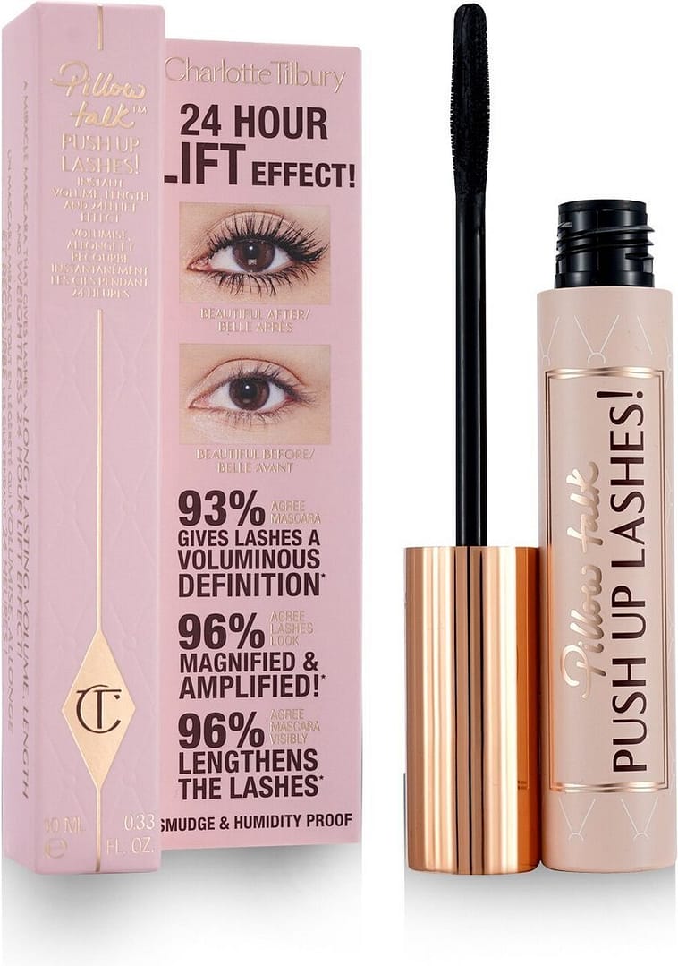 Pillow Talk Push Up Lashes! mascara is my LASH INNOVATION and the secret to instant LENGTH, WEIGHTLESS VOLUME, STRETCH and a 24-HOUR VERTICAL LIFT EFFECT for the LASHES OF YOUR DREAMS! Pillow Talk Push Up Lashes is your beauty AMPLIFIER to make your eyes look bigger, brighter and more awake! Make your eye colour POP and create the perfect Pillow Talk lash! Super Black is a classic jet-black shade to add definition and intensity for dark, thick and full looking lashes!